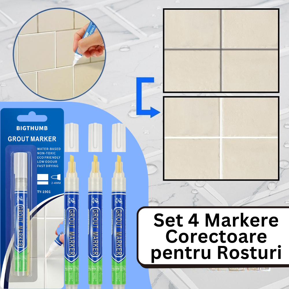 - Setul contine 4 markere corectoare pentru rosturile de la faianta sau gresie